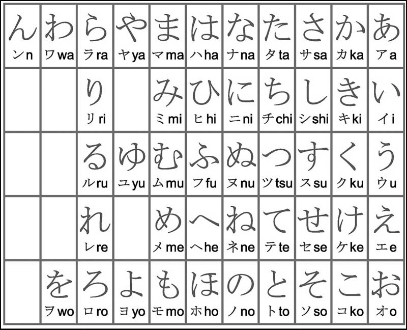 - 5 hàng: a(あ), i(い), u(う), e(え), o(お).